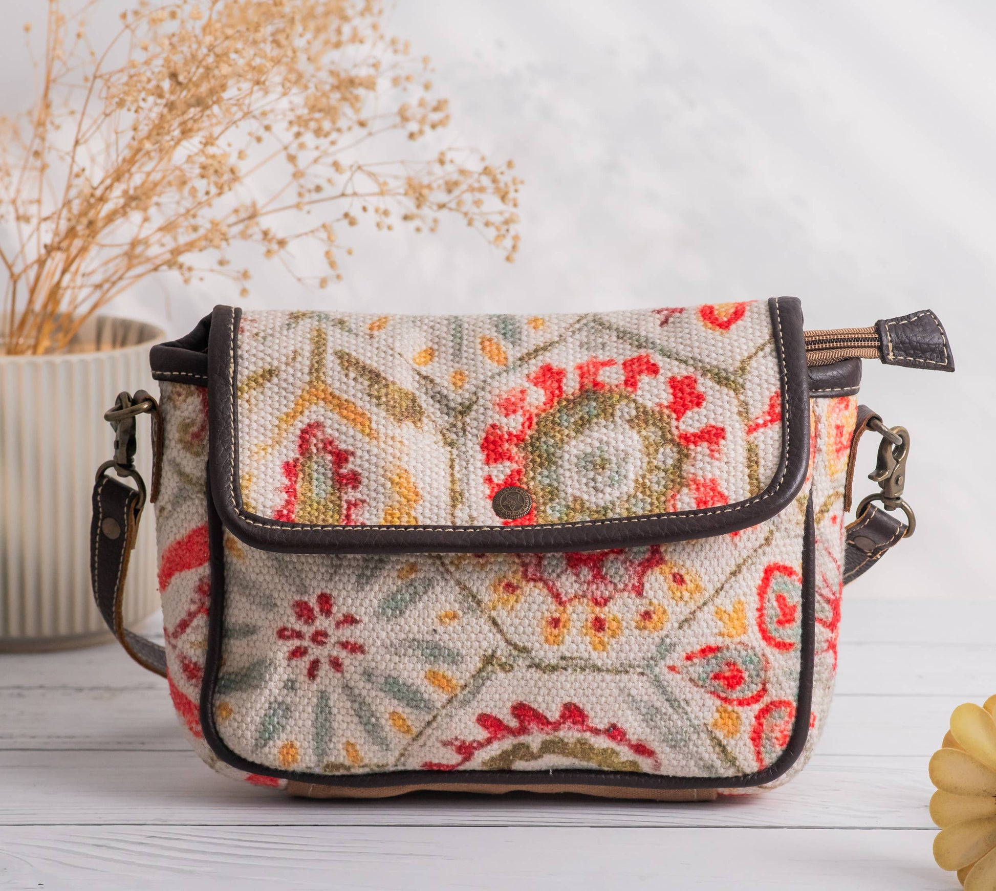 • Material :Upcycled Canvas, Cotton Fabric & Leather