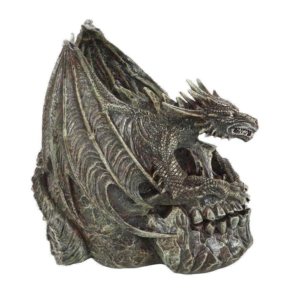 This magnificent Draco Dragon skull ornament licensed by Spiral Direct Ltd is incredibly detailed and features a vengeful dragon sprawling over the top of a skull with its long winged arms drapped around the eyes and claws delicately placed above the mouth. Measuring 7.5 inches in height this collectable item is crafted from high-quality resin and is an ideal gift for any dragon enthusiast. H18.5cm x W13.5cm x D17cm