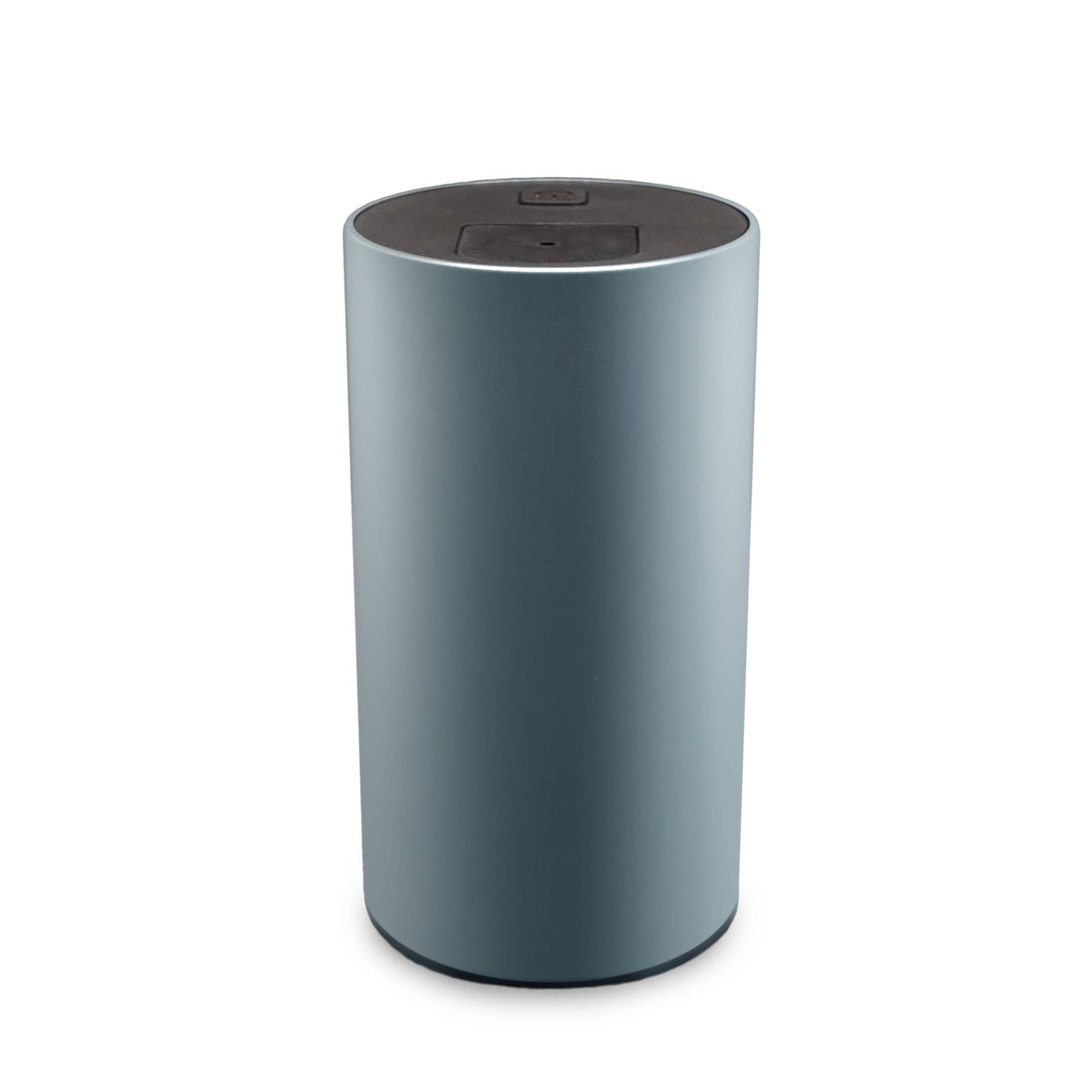 Sleek, compact aluminium body with stable non-slip base, designed to fit in car cup holder