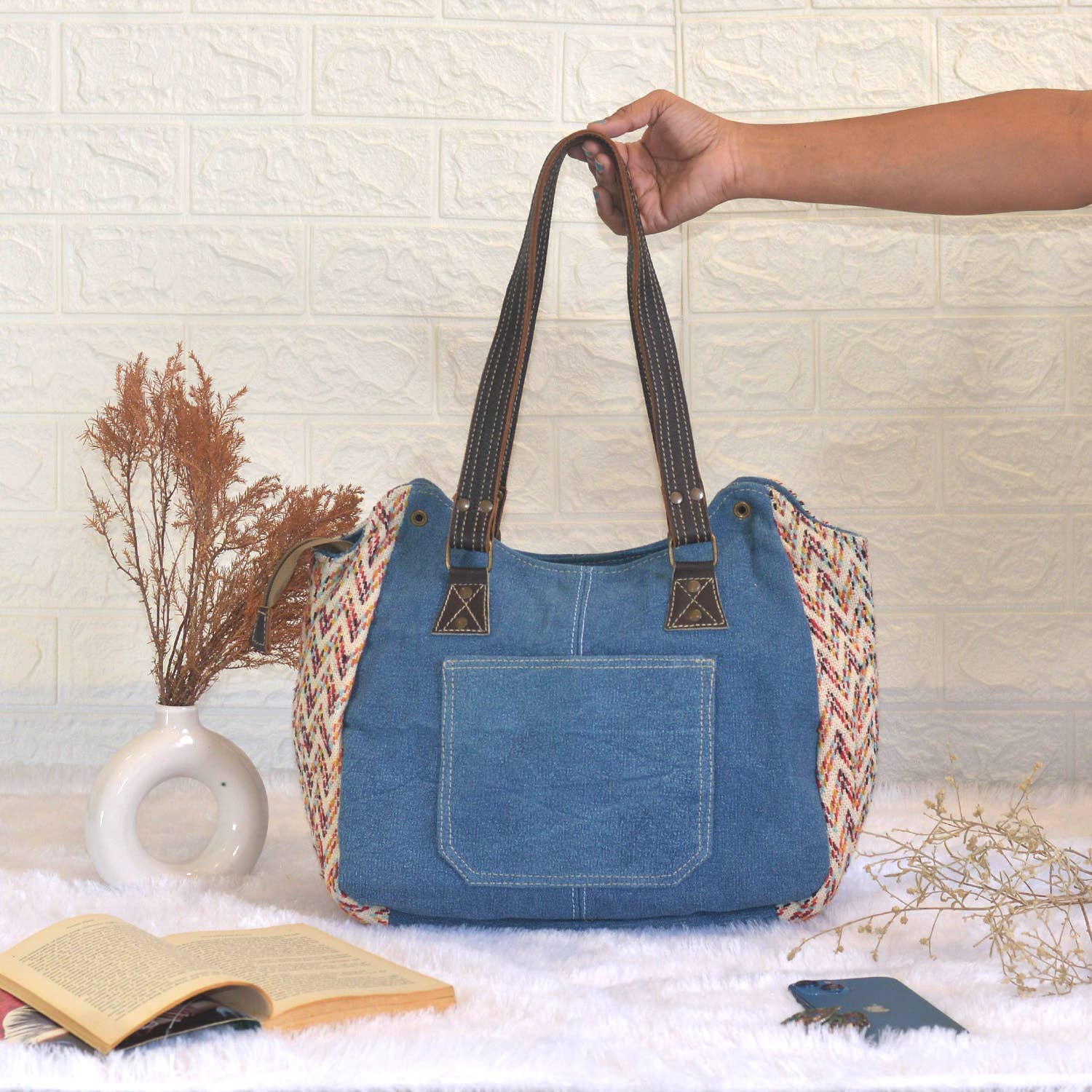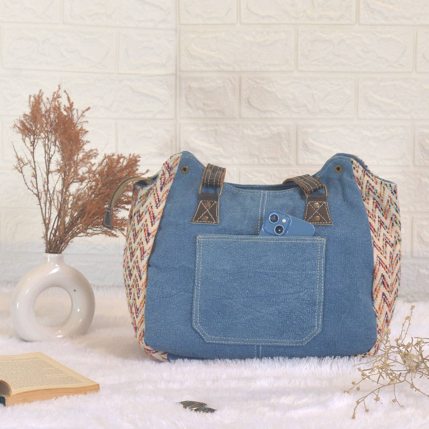 Crafted with cotton denim fabric & leather, this bag will add personality to your outfit and let you prominent from the crowd.