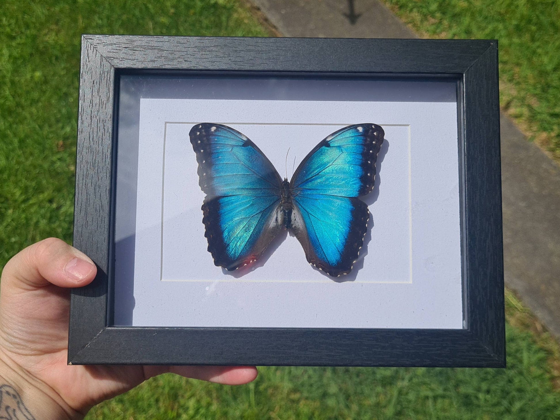 A curated mix entomology displays. Each display features a real specimen with plain white backgrounds to suit any home décor. Species names are clearly labeled on the back of each frame. All displays are made to order with responsibly sourced specimens. Customizations available—such as excluding specific species (e.g., no spiders) or recreating past work. Frames are BLACK unless otherwise requested. Displays come in various sizes and price ranges to suit all budgets.