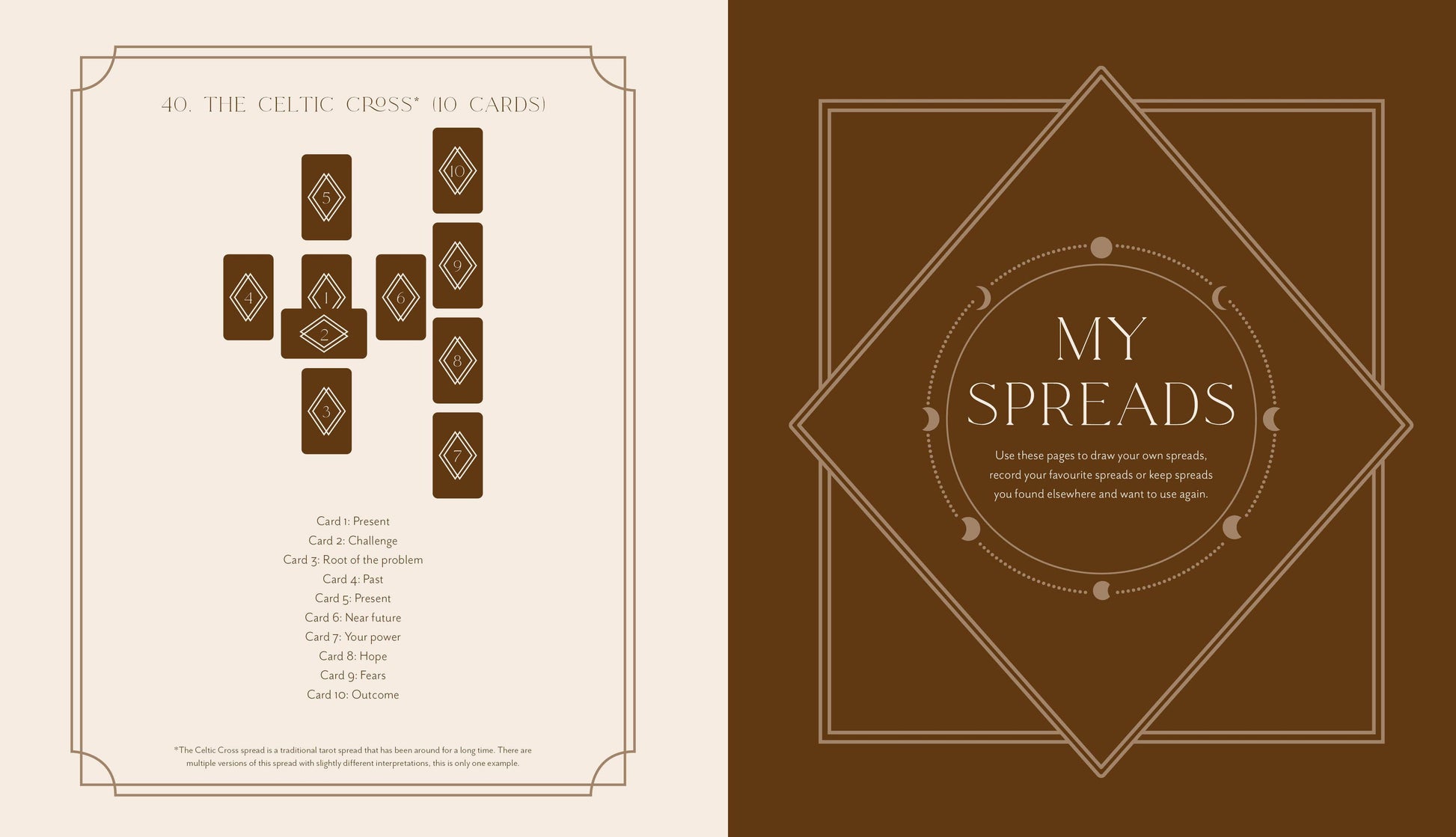 Keep this gorgeous journal alongside your collection of tarot and oracle card decks to unlock the secrets of your readings and awaken your consciousness. The journal includes a helpful introduction to card reading, reading exercises, notes on the differences between oracle and tarot readings, and suggestions for spreads to work with. A stunningly beautiful book with exquisite finishes, including two metal clasps, two ribbon markers, gilded gold edges on the pages, and gold and silver foil on the cover; this journal is designed specifically for you to easily keep a record of your card readings, and is completely compatible with all card decks expanding opportunities for spiritual work with tarot and oracle sets. Grab a deck and your favorite pen (because we know you have one) and open yourself to the messages that await you.