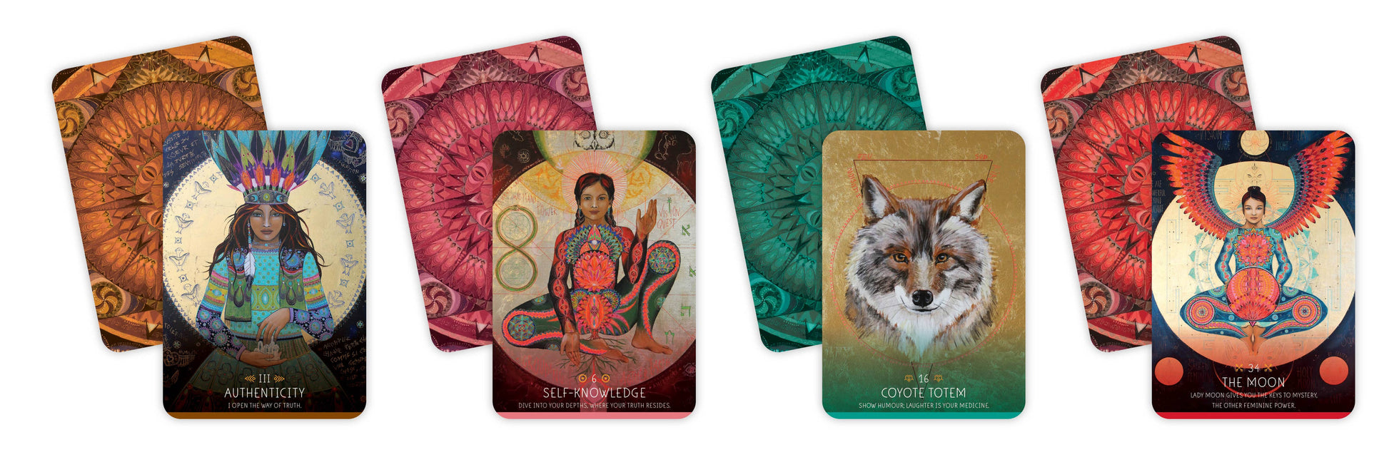 Stemming from shamanic teachings, the traditions of the first peoples and ritual arts, this oracle, co-created by Catherine Maillard and painter Caroline Maniere, offers you the Women's Medicine Way. Discover the archetypes of the divine feminine, and the symbols of their indomitable strength, your gifts, your allies, and your powers, to restore the consciousness of the Great Goddess, and awaken you to the wisdom of Mother Earth. Included are detailed card reading layouts, with four different card categories and four different backs: Archetypal, Feminine, Totems, and Medicine cards. Women's circles, red tents, the International Council of Thirteen Indigenous Grandmothers, the magic of menstrual cycles, the return to sacred sexuality … In these times of great change, women are gathering in the desire of sisterhood, intending to reconnect with their true essence, reawaken their life force, and change the world.